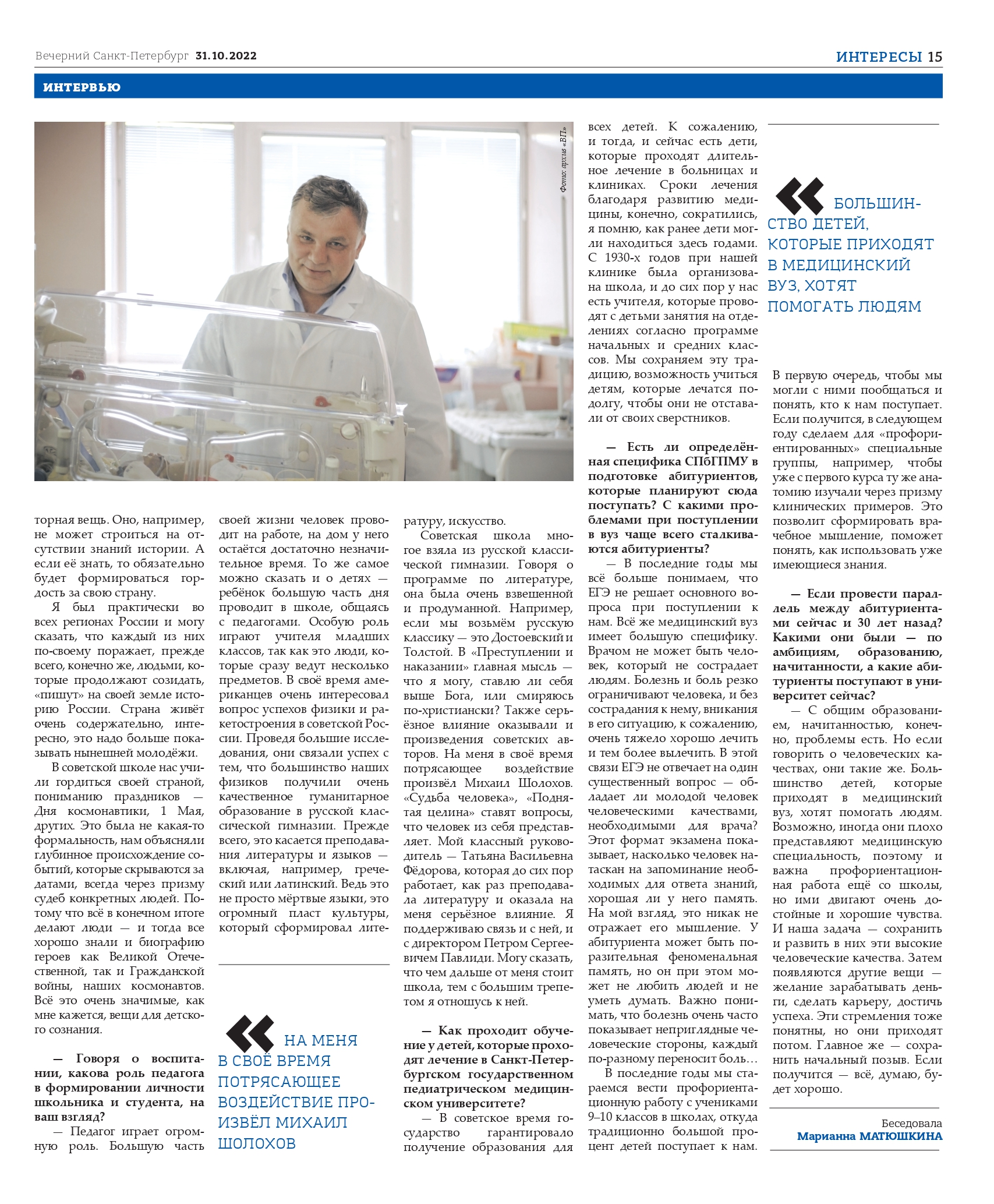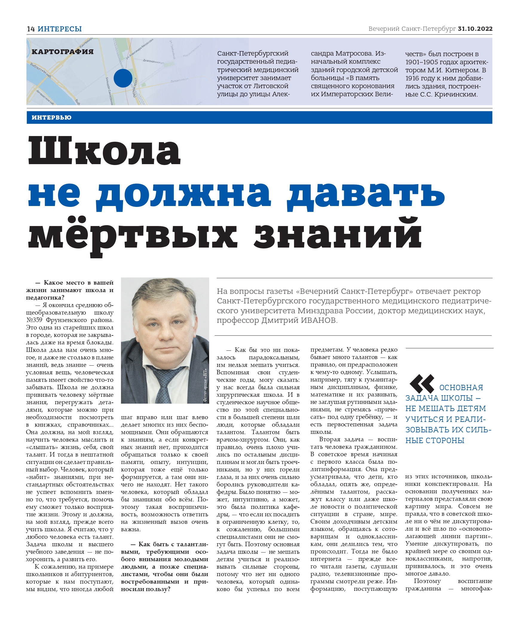 На вопросы газеты «Вечерний Санкт-Петербург» отвечает ректор Санкт-Петербургского государственного медицинского педиатрического университета Минздрава России, доктор медицинских наук, профессор Дмитрий Иванов.