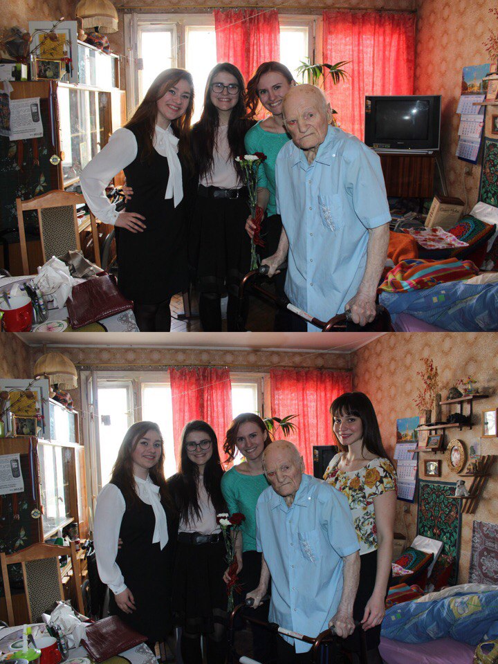 "Встреча прошла замечательно, Валентина Ивановна напоила нас чаем и рассказала о своей большой семье, показала нам семейные фотографии: сыновей, внуков, правнука, которыми она очень гордится. Валентина Ивановна рассказала, как они выживали в блокаду, как сложно было жить даже после эвакуации и как трудно было снова вернуться в Ленинград. Верная своей профессии она работала преподавателем немецкого языка до 77 лет, причём не просто объясняя правила, а устраивая студентам экскурсии по Петербургу, приобщая их к культуре ее родного города. Ещё она была очень рада, что её просьба поздравить Эльгу Фердинандовну была услышана. Перед самым нашим уходом Валентине Ивановне позвонила ее двоюродная племянница, и мы узнали, что её семья не забывает о своём герое и старается сделать всё возможное, чтобы на душе у неё было спокойно", - поделились своими впечатлениями студентки-волонтеры.