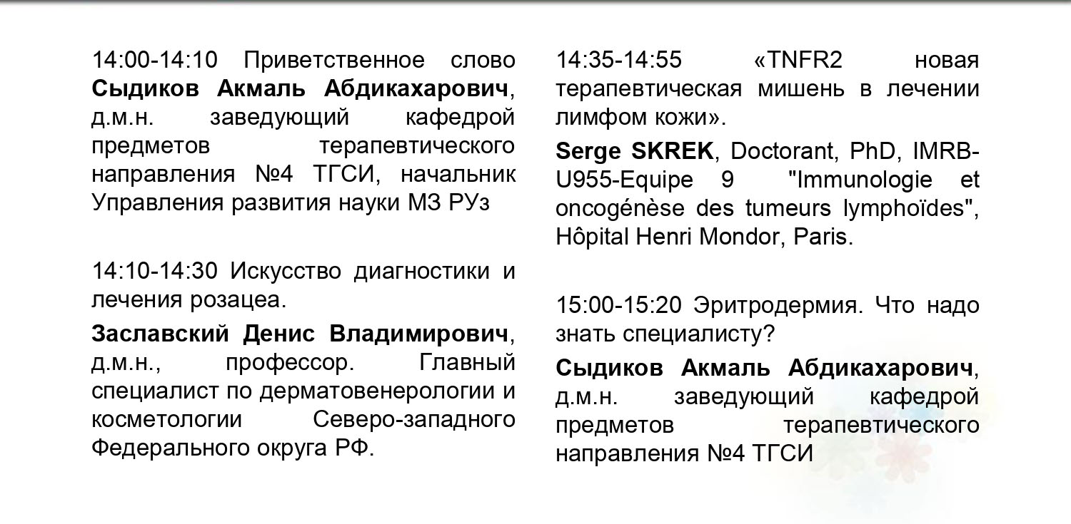 В 14 часов 10 минут запланировано выступление профессора Дениса Заславского с докладом «Искусство диагностики и лечения розацеа».