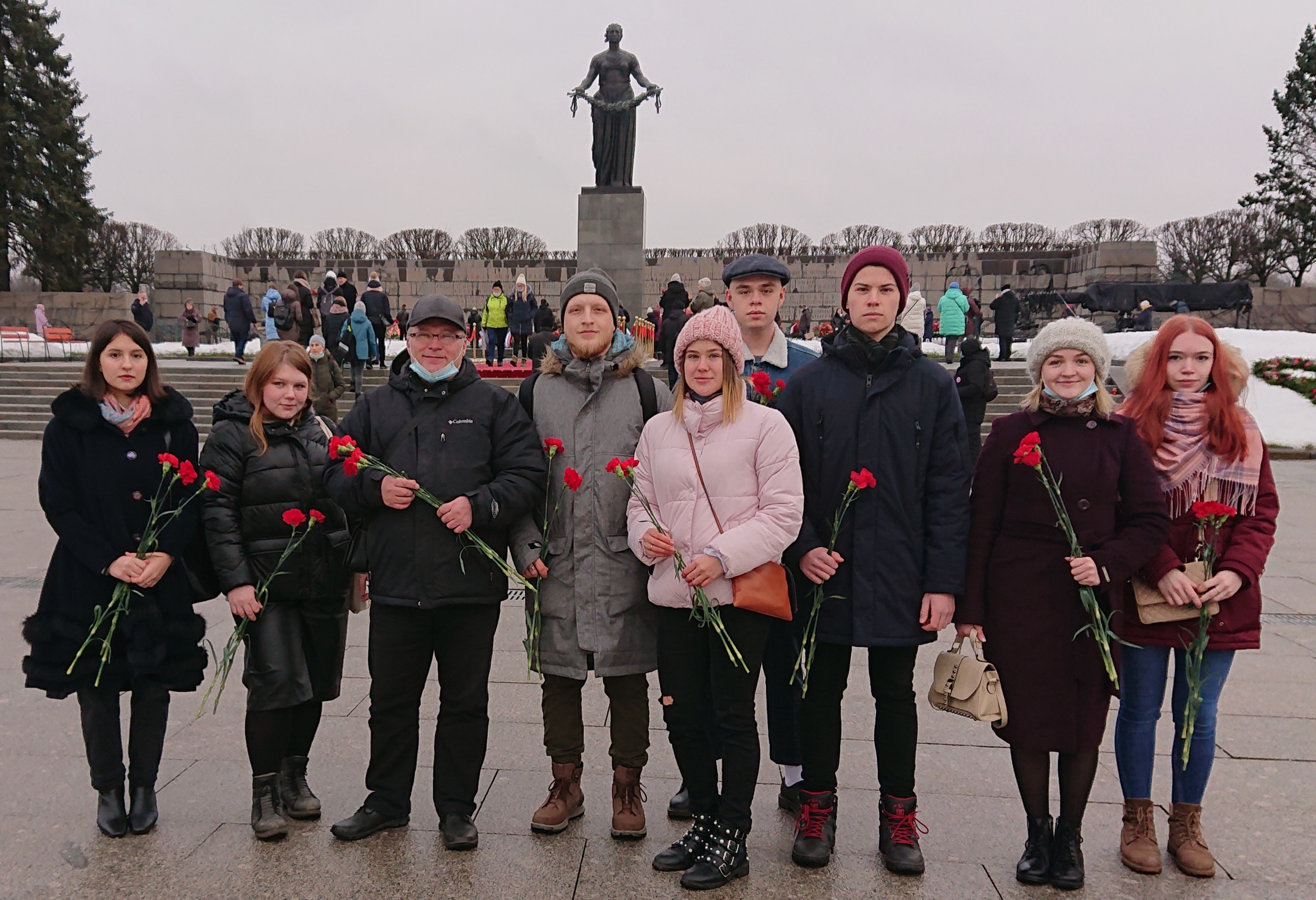 В день 77-й годовщины полного освобождения Ленинграда от фашистской блокады студенты Педиатрического университета возложили цветы к монументу «Мать-Родина» на Пискаревском мемориальном кладбище.
