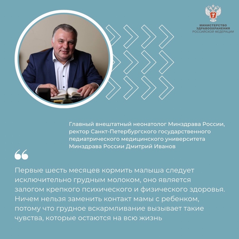 О важности грудного вскармливания для здоровья ребёнка рассказал главный неонатолог Минздрава России, ректор Санкт-Петербургского государственного педиатрического медицинского университета Минздрава России Дмитрий Иванов.