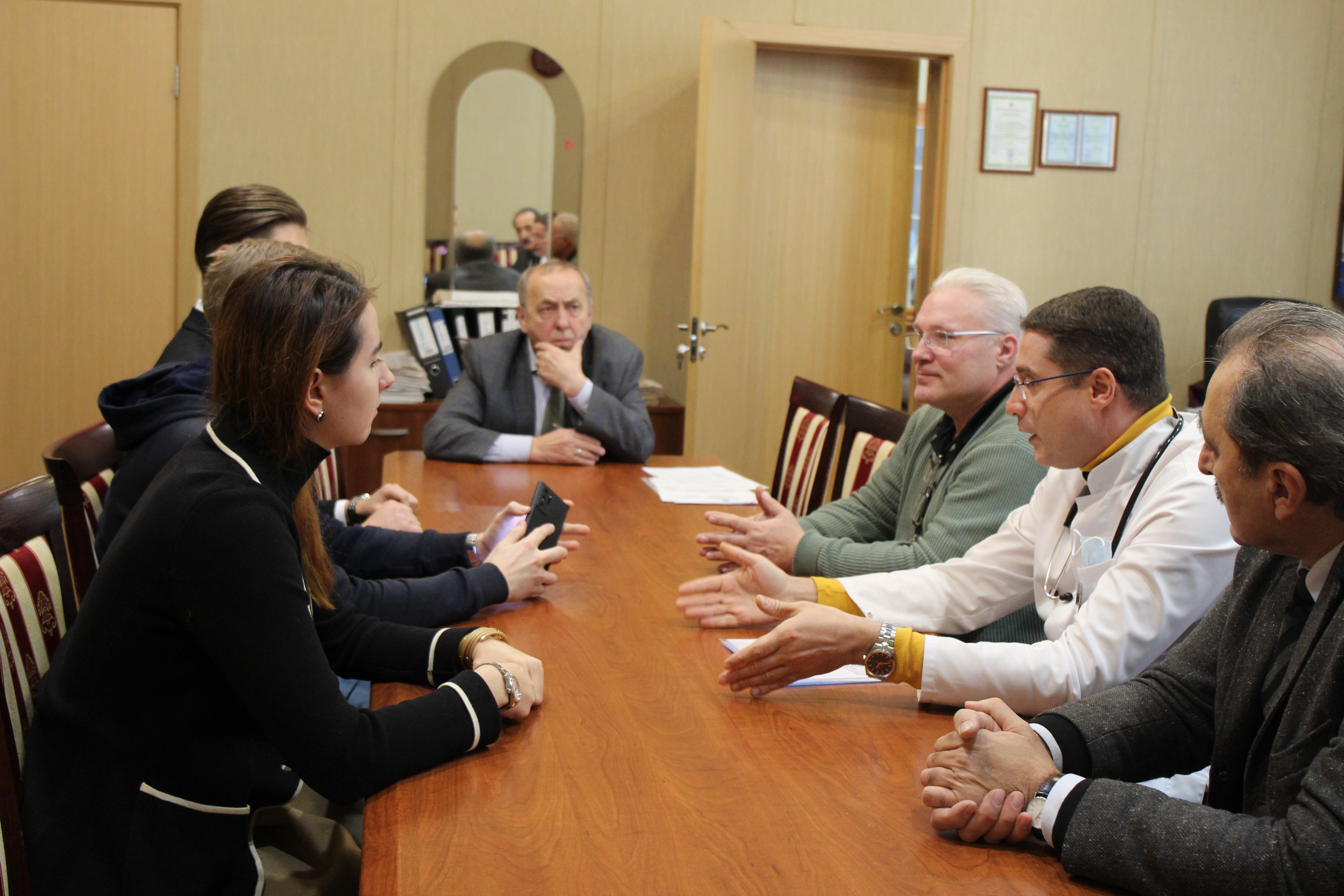 Активистов молодежного парламента встретили проректор по учебной работе Педиатрического университета Василий Орел, помощник ректора СПбГПМУ по воспитательной работе Виктор Погорельчук, председатель Профкома обучающихся вуза Глеб Кондратьев и научный руководитель студенческого научного общества университета Георгий Багатурия.