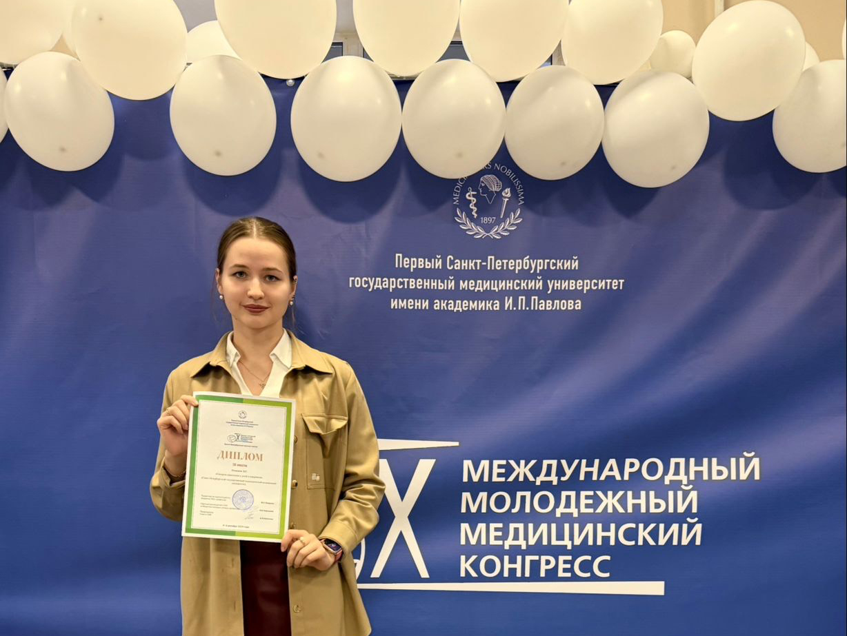Студентка представила свою работу в секции «Педиатрия и детская хирургия», где поделилась результатами своего исследования, проведенного под руководством доцента Нины Евдокимовой, заведующей учебной частью кафедры пропедевтики детских болезней с курсом ухода за детьми. Жюри отметило исследование студентки дипломом III степени.
