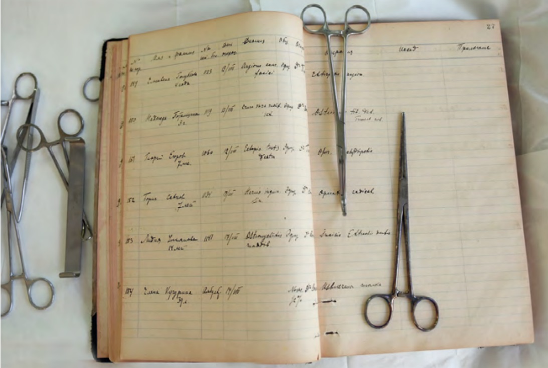 Так, например, в операционном журнале 1925 года можно найти многочисленные отметки о хирургических вмешательствах, которые выполнил знаменитый врач, ортопед Роман Романович Вреден. Учёный, имя которого сегодня носит Национальный медицинский исследовательский центр травматологии и ортопедии, с 1926 года был научным руководителем хирургического отделения Института охраны материнства и младенчества.