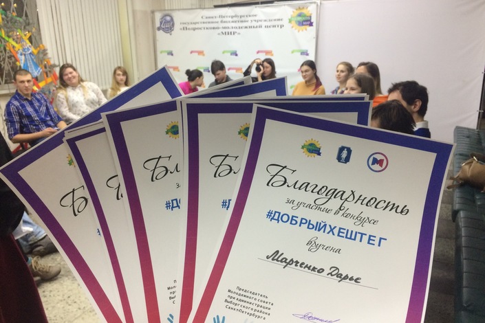 18 декабря в подростково-молодежном центре «МИР» Выборгского района Петербурга наградили участников добровольческого информационного интернет-конкурса «#Добрыйхештег».