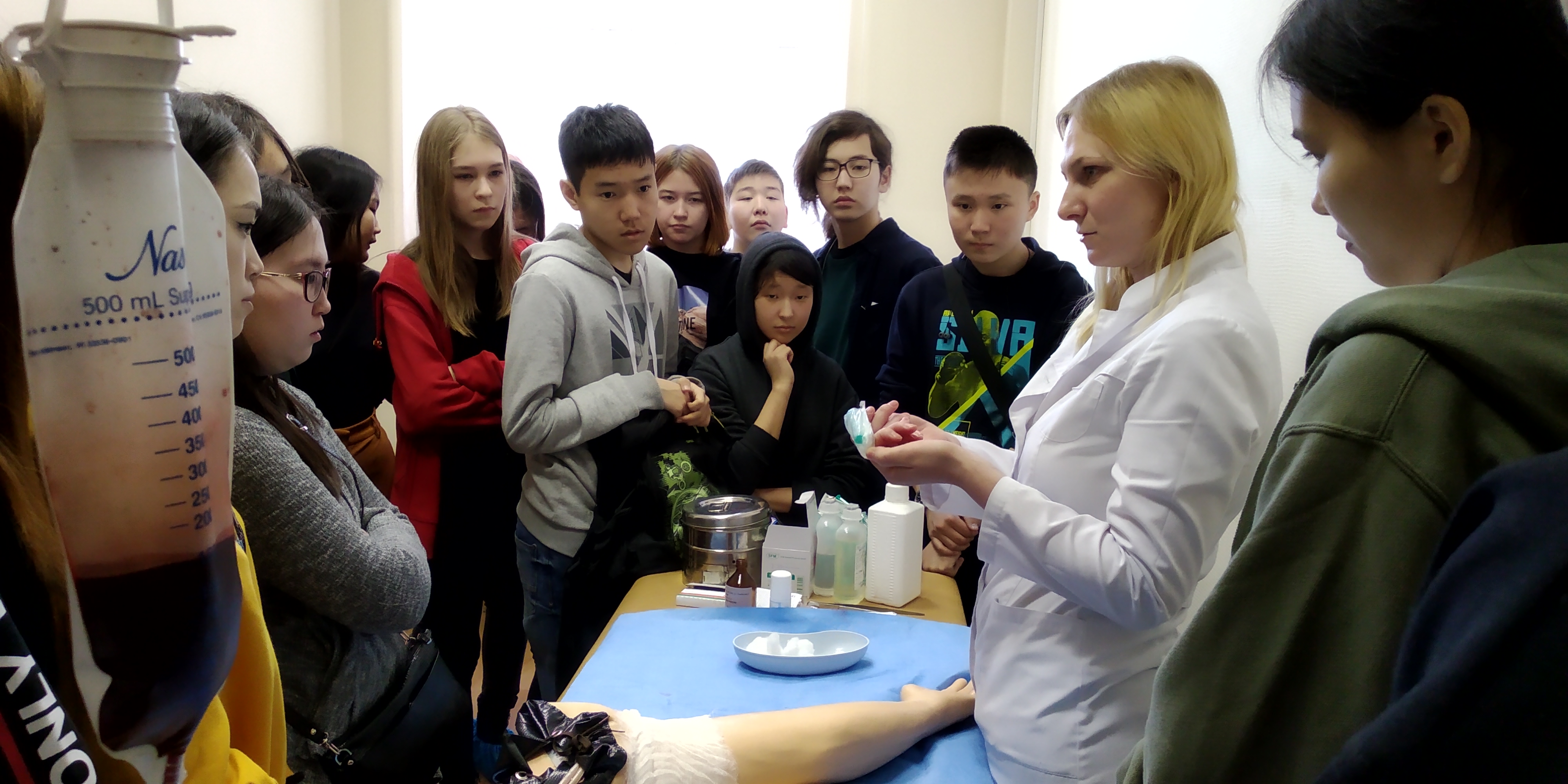 Также будущие абитуриенты из Якутии посетили современные симуляционные классы, где специалисты СПбГПМУ провели для школьников уроки по оказанию первой неотложной помощи с применением специальных фантомов — полноразмерных тренировочных манекенов, повторяющих тело человека.