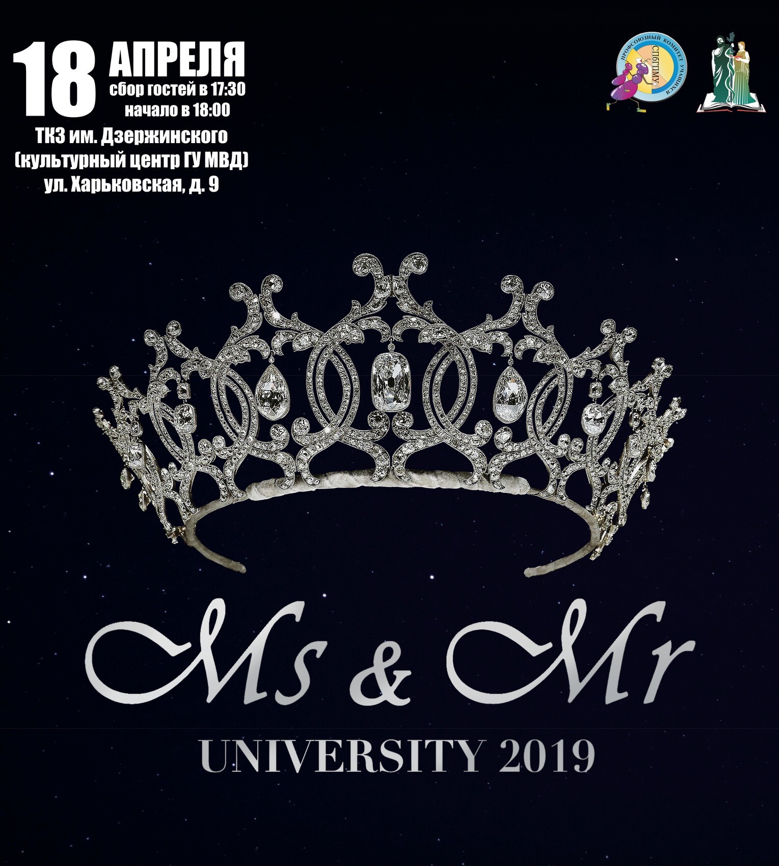18 апреля Профсоюзный комитет учащихся СПбГПМУ организует ежегодное массовое мероприятие - конкурс красоты и таланта «Мисс и Мистер Университет 2019».