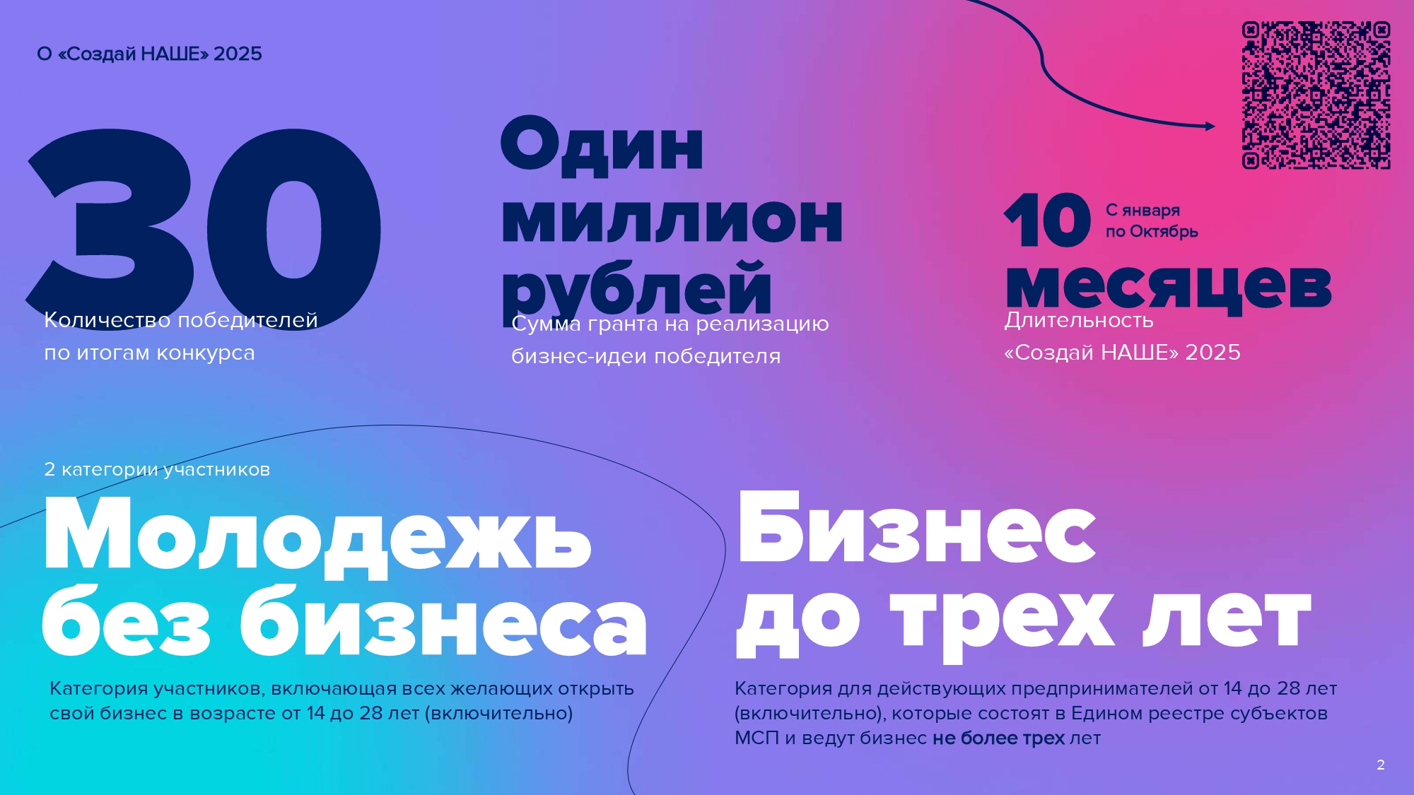 Конкурс даем возможность открыть бизнес или вывести его на новый уровень с грантом в размере 1 млн ₽, поддержкой от государства и бизнес-экспертов. Заявки принимаются до 3 марта.