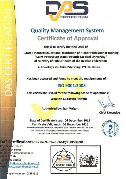 ФГБОУ ВО СПбГПМУ Минздрава России осуществляет образовательную деятельность на основании документов: